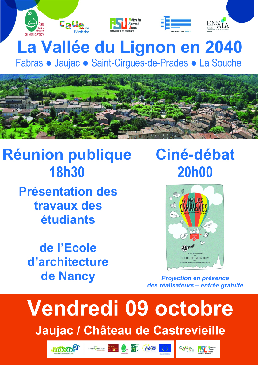 Les communes de Fabras, Jaujac, La Souche et Saint-Cirgues de Prades ont accueilli en 2020 les étudiants de l’école d’architecture de Nancy. Des projets d’urbanisme et d’architecture innovants ont été imaginés pour inventer de nouvelles manières d’habiter et de travailler dans la vallée du Lignon.