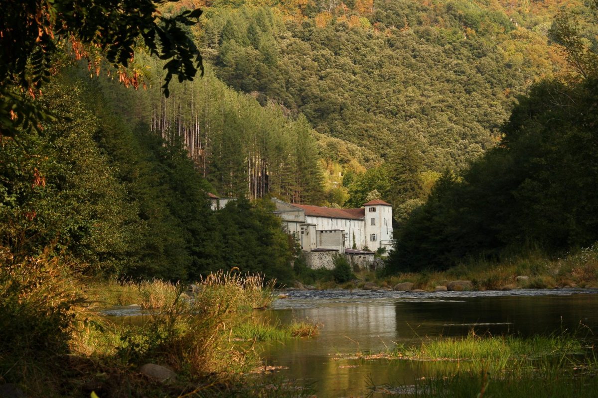 Au pays de la pente, l’eau ne demande qu’à s’enfuir, à courir, à fuir vers le Rhône ou la Loire. A l’inverse, l’homme qui habite la pente n’a qu’une envie : la retenir et l’utiliser. C’est ainsi que l’homme a inventé la béalière, petit canal de dérivation de l’eau captée en amont derrière un seuil. Une fois dérivée, l’eau a été utilisé pour irriguer les cultures, les châtaigniers, les muriers mais aussi faire tourner les moulins puis les moulinages en grand nombre. Implantées dès le 18ème siècle, ces usines utilisaient la force motrice de l’eau pour tordre les fils de soie avant le tissage. Plus de 350 fabriques ont été recensés sur le Parc, elles marquent aujourd’hui encore les paysages des Monts d’Ardèche.
