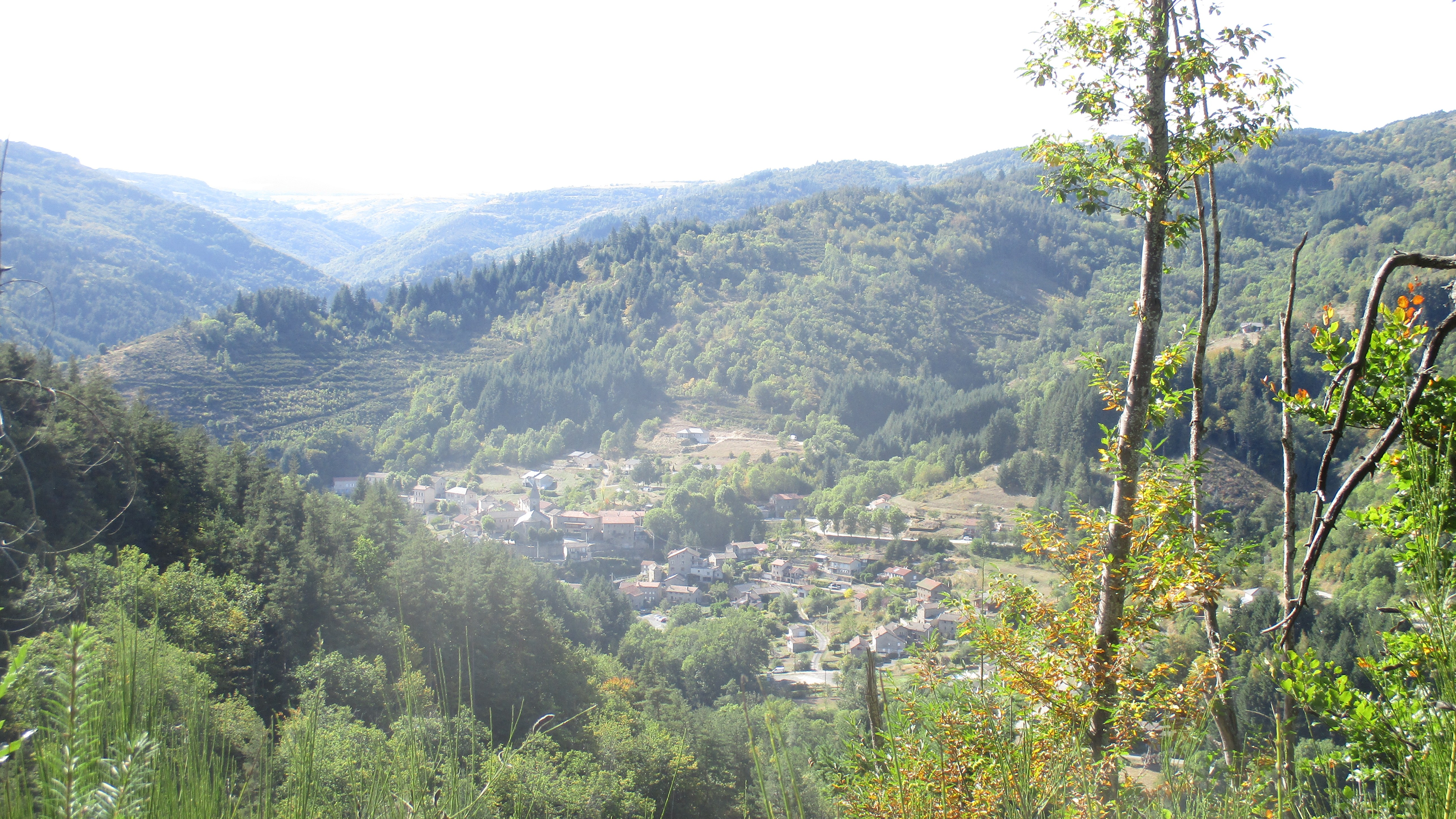 - Face à l'église de Saint-Julien-Boutières, traverser la route D120 et remonter le chemin à droite de la maison.