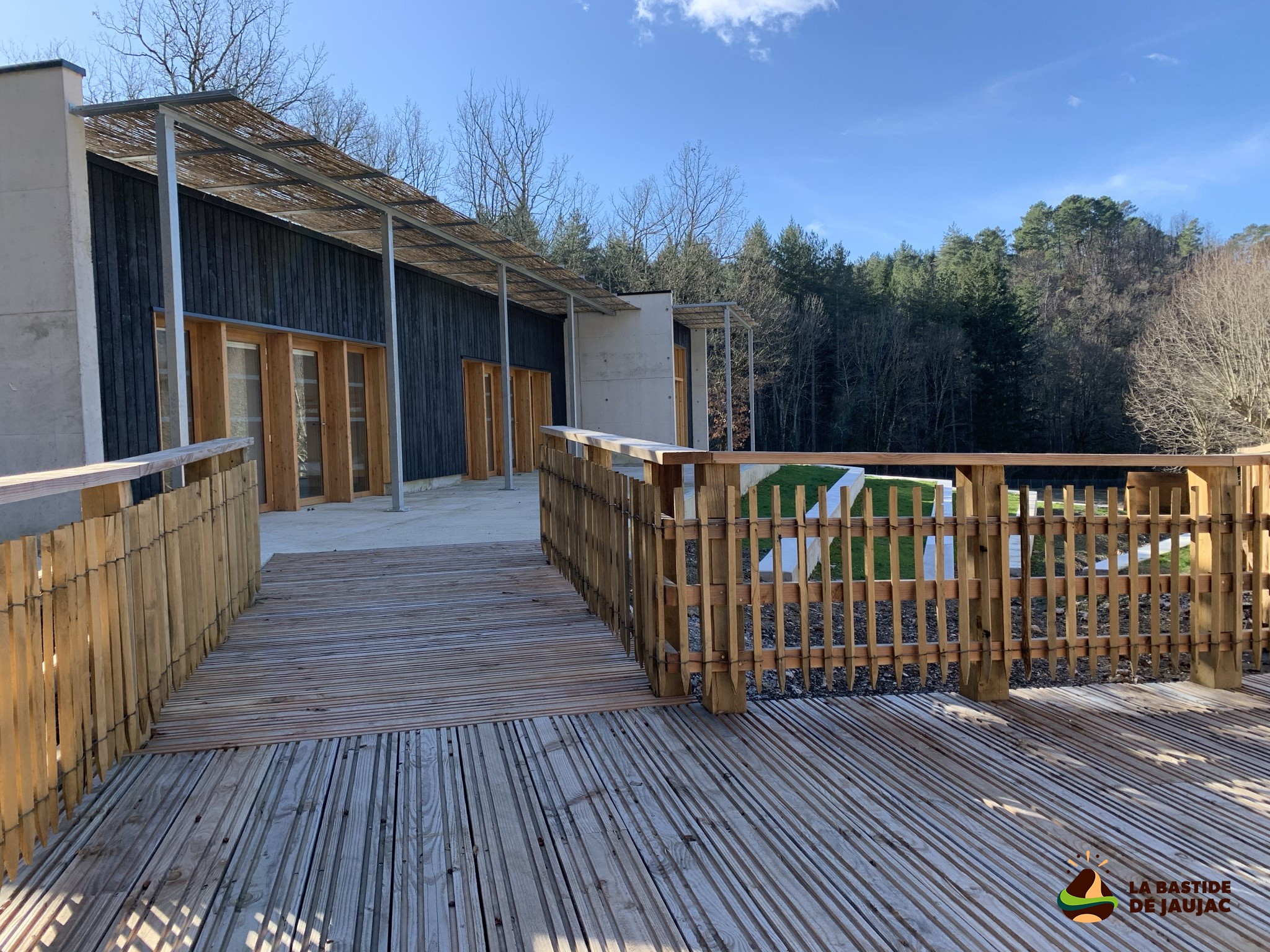 La Bastide est située en Ardèche sur la commune de Jaujac, village de caractère et siège de la Maison du Parc naturel régional des Monts d'Ardèche. Le site peut accueillir jusqu'à 64 couchages, dans un lieu calme, ombragé, en pleine nature.