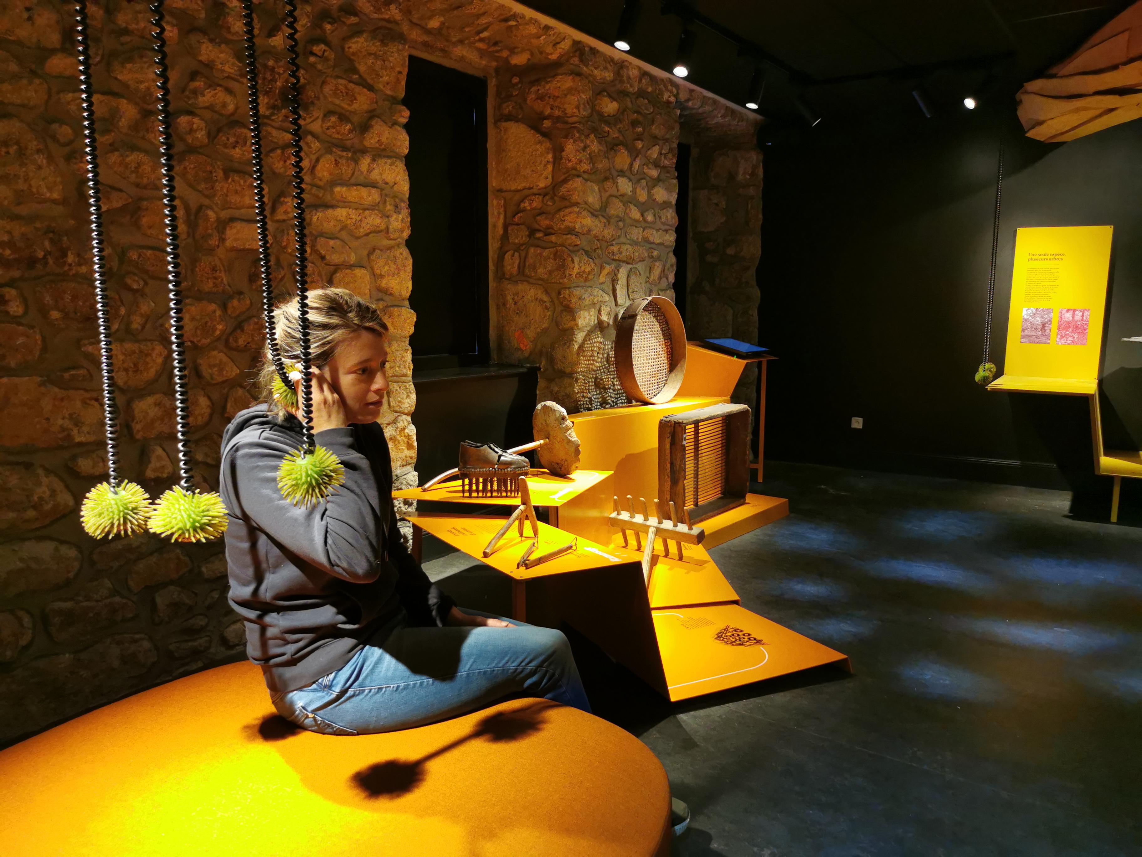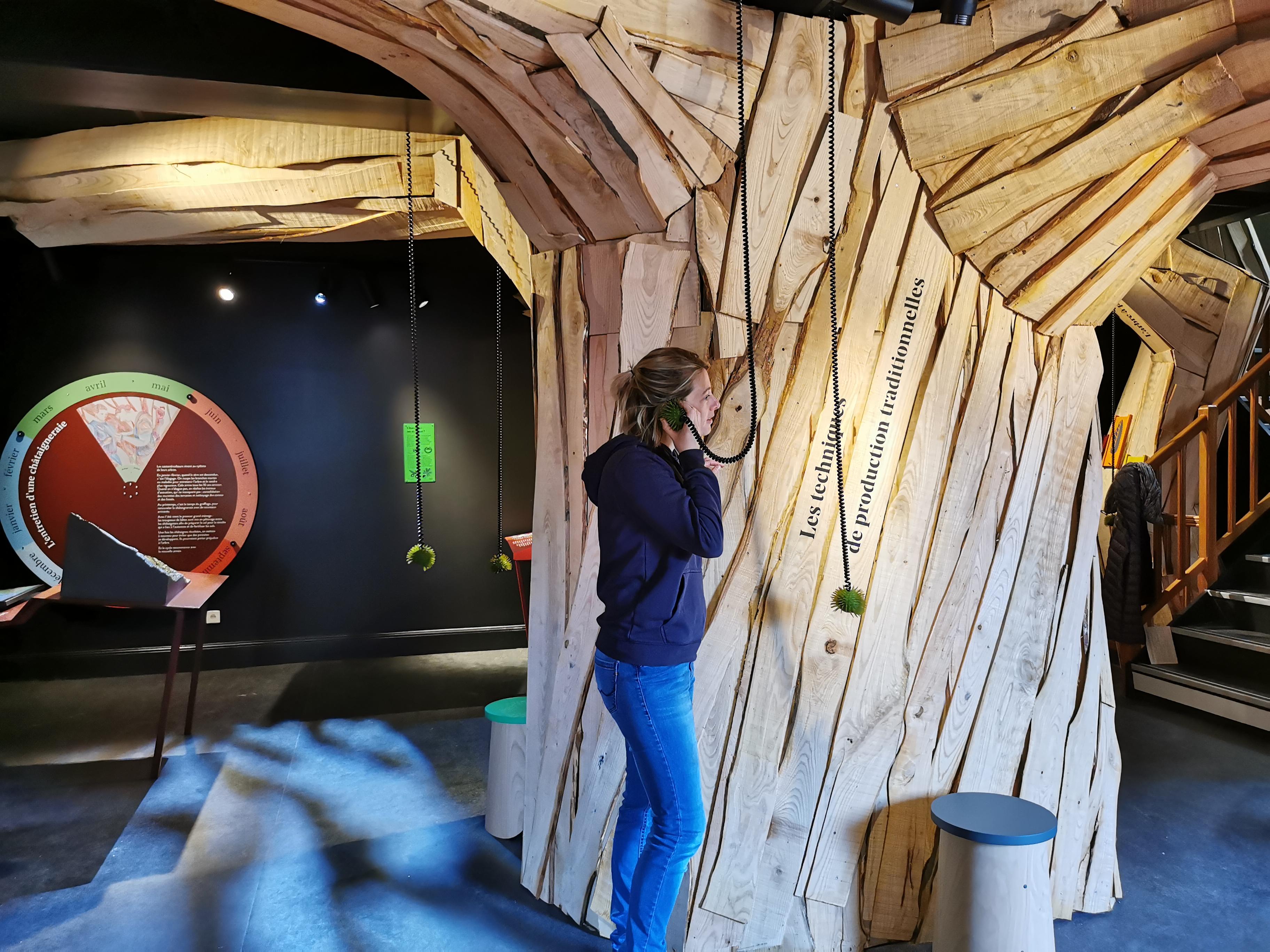 Sur 2 étages de décor interactif, un vieux châtaignier vous raconte son histoire : sa relation avec l'homme des pentes ardéchoises, les usages, les techniques, l'environnement, l'avenir...